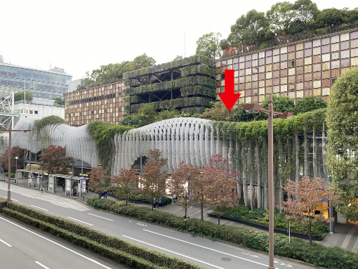 すぐそこにお向かいのビルがあるバラ園です。デパートの3階ならではの景色です。下をのぞき込めば、玉川通りが走っています。