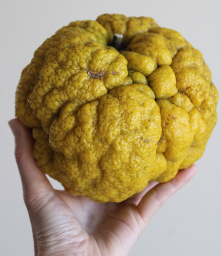 皮が肥大していった結果なんでしょうね。晩白柚みたいに、大きいけれどつるんとした皮のものと比べると、迫力が違います。