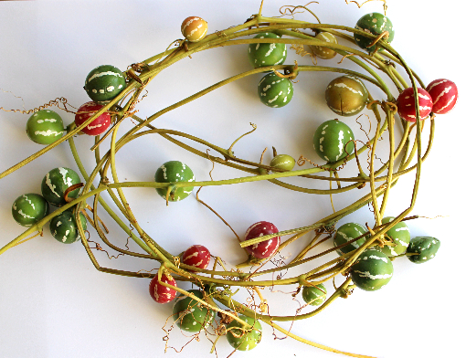私は、このスズメウリをいけなば花材として入手したのですが、最終的にはリースに使用しました。