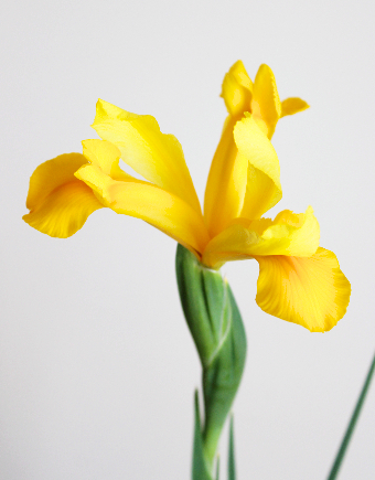 もっと大きいダッチアイリスのたぐいなら、黄花を生けたことがあると思うのですが、このようなさらっとしたアイリスの黄色単色はお初じゃないかな……。