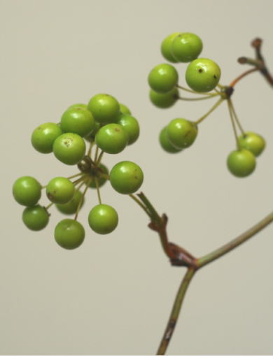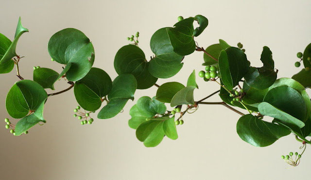 サンキライの実物と言えば、赤い実を思い浮かべる人が多いかもしれませんが、グリーンの実の美しさも捨てがたいものがあります。私個人としては、グリーンの方が好きなくらいです。